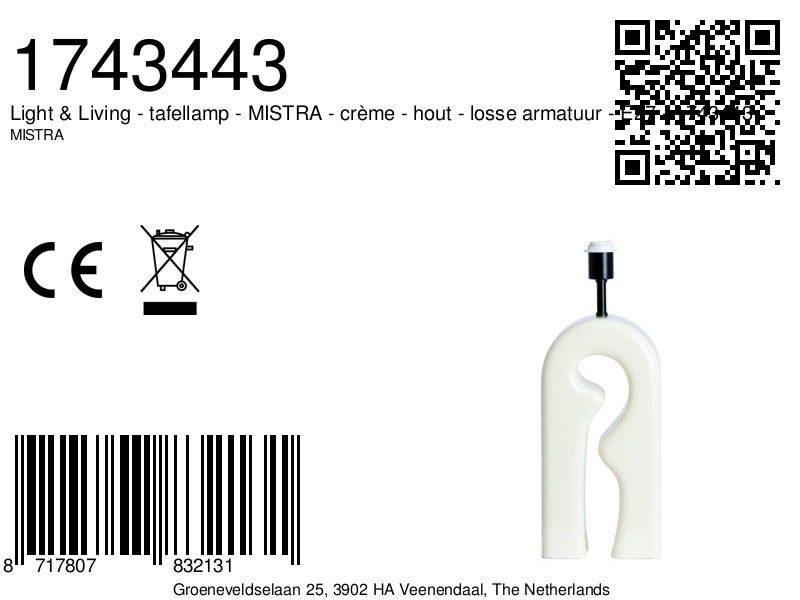Lámpara de mesa MISTRA de Light & Living. Acabado en elegante color crema con un sutil brillo. Su diseño de madera aporta calidez y un estilo atemporal a tu decoración.