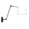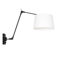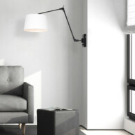 Esta lámpara de pared combina la solidez industrial con una suave atmósfera acogedora. La pantalla de lino blanco filtra la luz de manera agradable, mientras que el marco de metal negro proporciona un aspecto moderno y robusto.