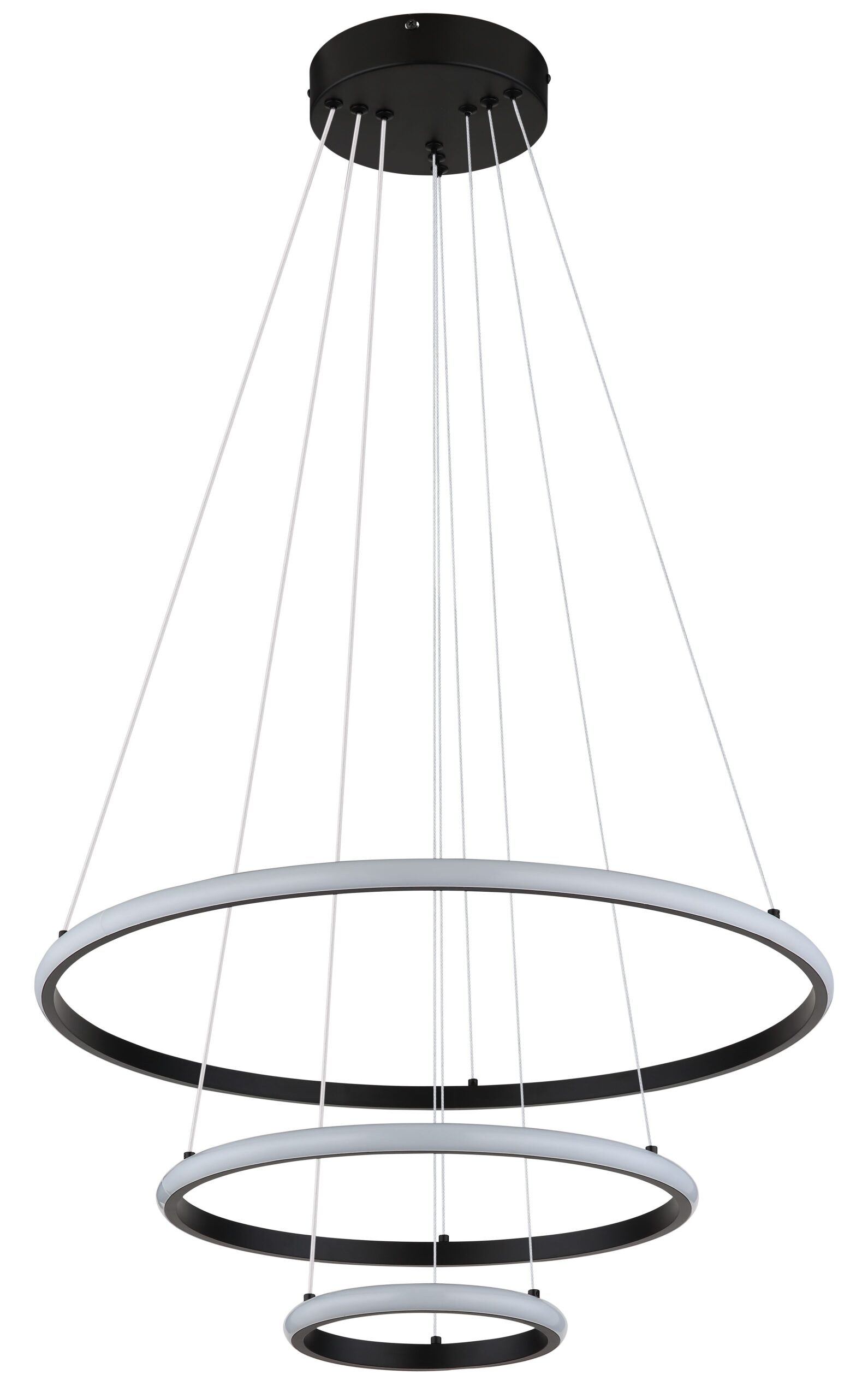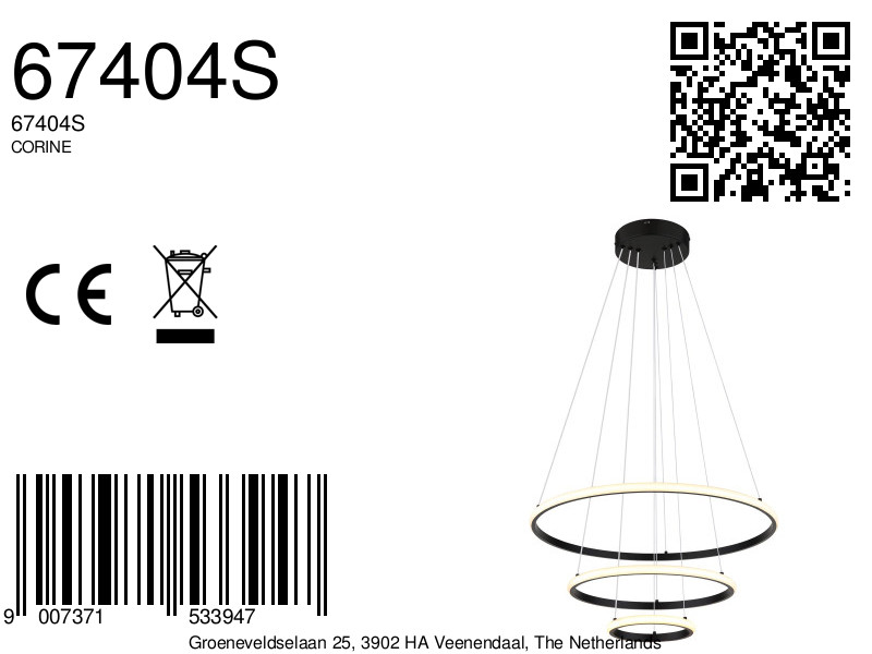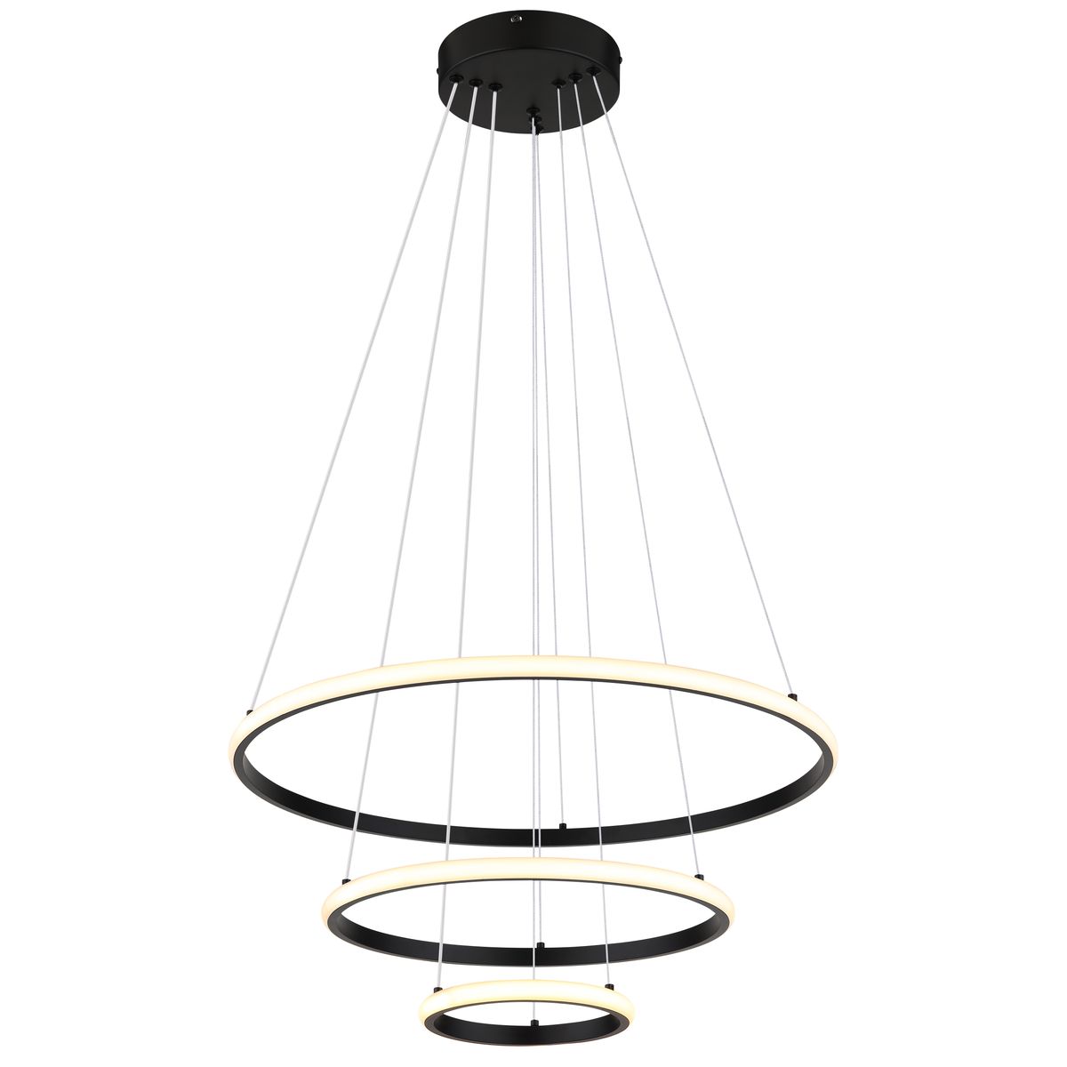 La lámpara colgante CORINE es un ejemplo destacado de diseño moderno y funcionalidad. Con su forma redonda y la disposición única de tres anillos, esta lámpara irradia estilo y elegancia. El metal negro mate proporciona una apariencia atemporal, mientras que la combinación de la pantalla de metal y el plástico opalino asegura una distribución uniforme de la luz. Con un diámetro de 600 mm, esta lámpara colgante es especialmente adecuada para espacios más grandes como salas de estar, comedores o vestíbulos.