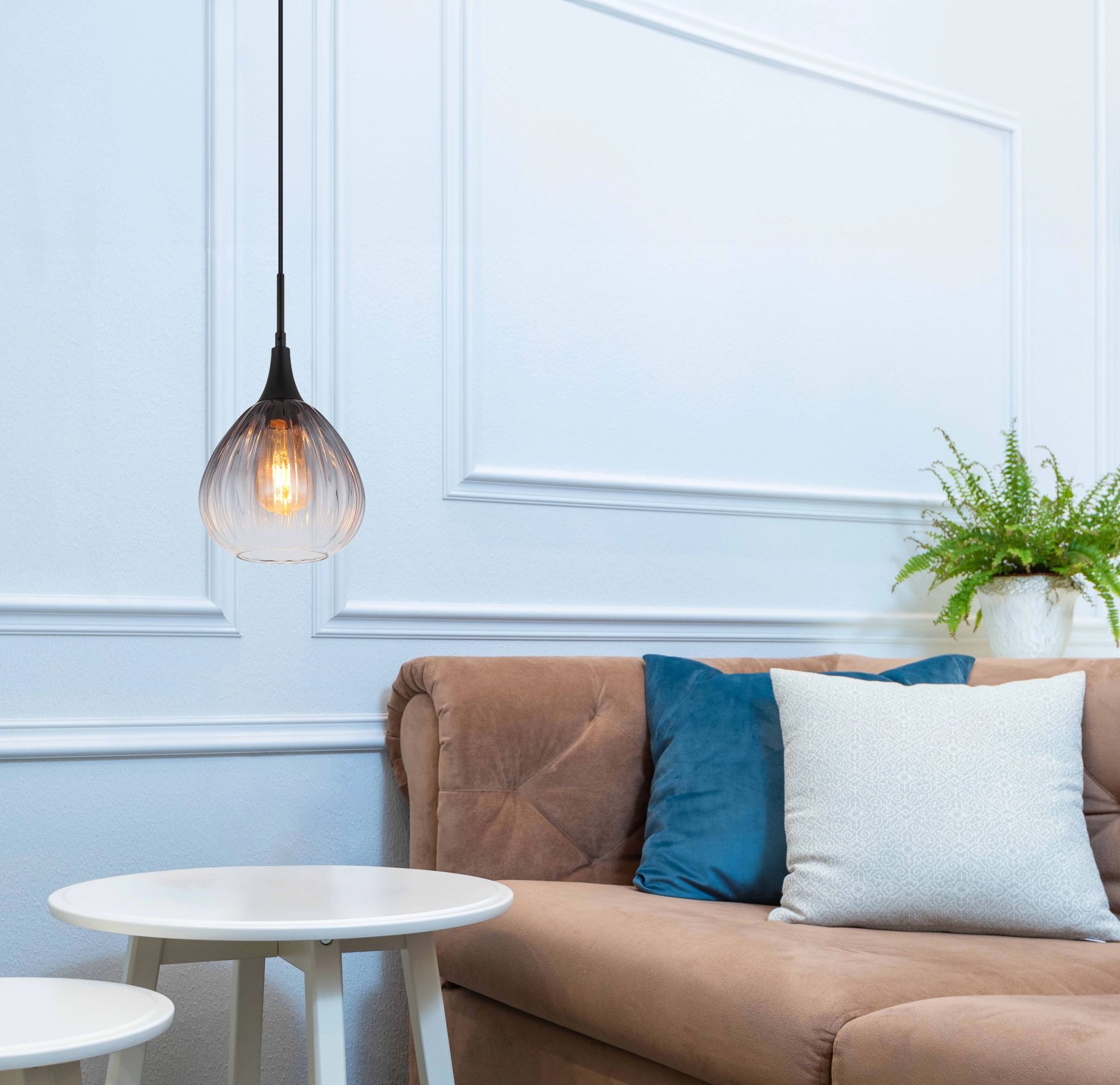 El material de la pantalla de la lámpara está fabricado en vidrio ahumado, claro y gradual, mientras que el marco tiene un hermoso acabado en metal negro mate. Gracias al uso de vidrio y al diseño redondeado, la lámpara colgante OLSEN es ideal para iluminar salas de estar, oficinas o habitaciones de hotel. Con las versátiles opciones de suspensión, esta lámpara proporciona una iluminación uniforme y ambiental en cualquier espacio.
