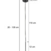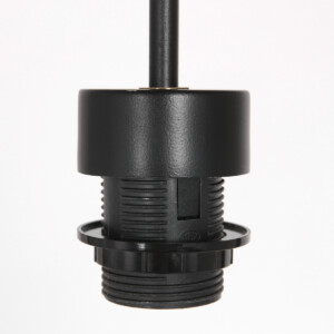 La lámpara colgante negra de la serie Sparkled Light tiene una altura ajustable entre 20 y 135 cm y un diseño minimalista que se adapta perfectamente a diferentes estilos de interior. El marco de metal y el cable negro le dan un aspecto moderno. El accesorio se entrega sin pantalla, por lo que puedes elegir una pantalla de vidrio o tela por ti mismo. La caja de techo tiene un diámetro de 11 cm.