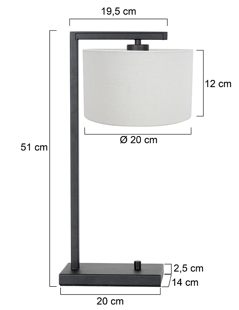 Esta lámpara cuenta con un casquillo E27 y es adecuada para fuentes de luz de hasta 40 vatios. El botón giratorio en la base hace que su uso sea fácil y práctico. Con una altura de 51 cm y una longitud de cable de 140 cm, esta lámpara encaja perfectamente en el comedor, la sala de estar o al lado de la cama como una elegante lámpara de noche.