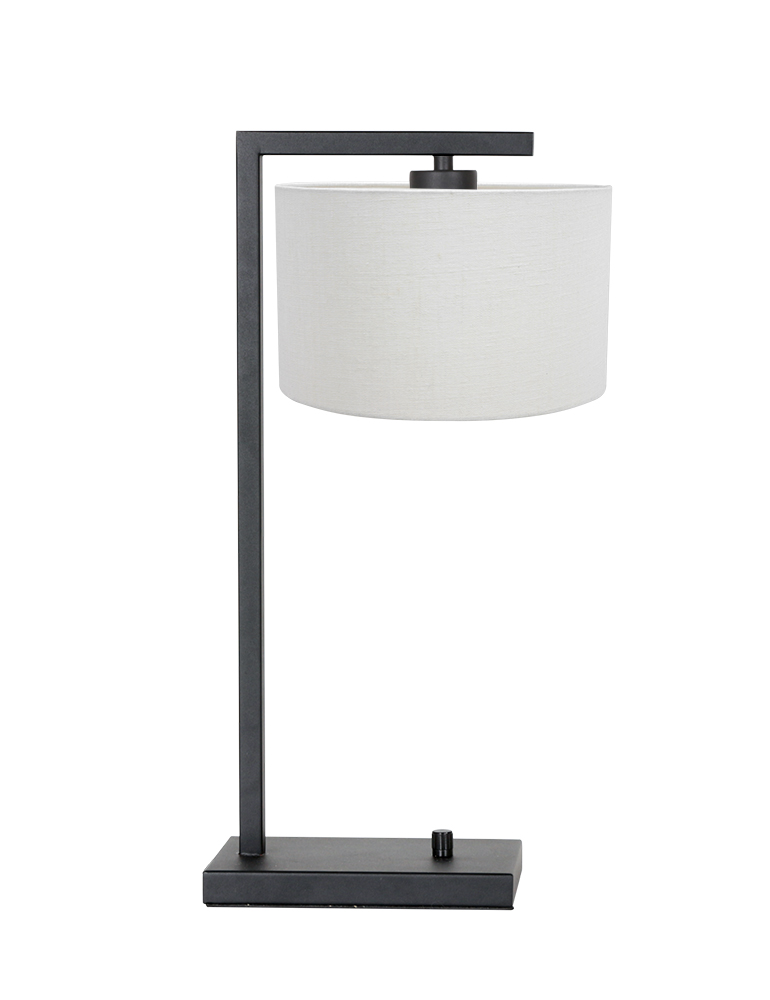 La lámpara de mesa negra de la serie Stang de Steinhauer combina un carácter industrial con una apariencia cálida. El marco de metal negro mate forma un contraste robusto con la gruesa pantalla de lino color crema, creando un efecto de luz agradable y difuso. Ideal como lámpara decorativa en un interior moderno o industrial.