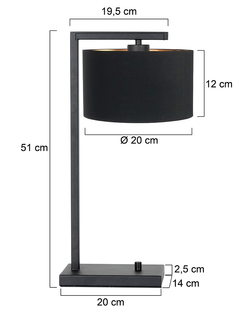 El control se realiza a través de un práctico botón giratorio en la base. Con una altura de 51 cm, una profundidad de 20 cm y una longitud de cable de 140 cm, esta lámpara de mesa encaja perfectamente en un aparador, mesita de noche o en un acogedor rincón de lectura.