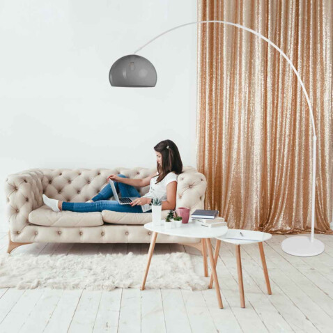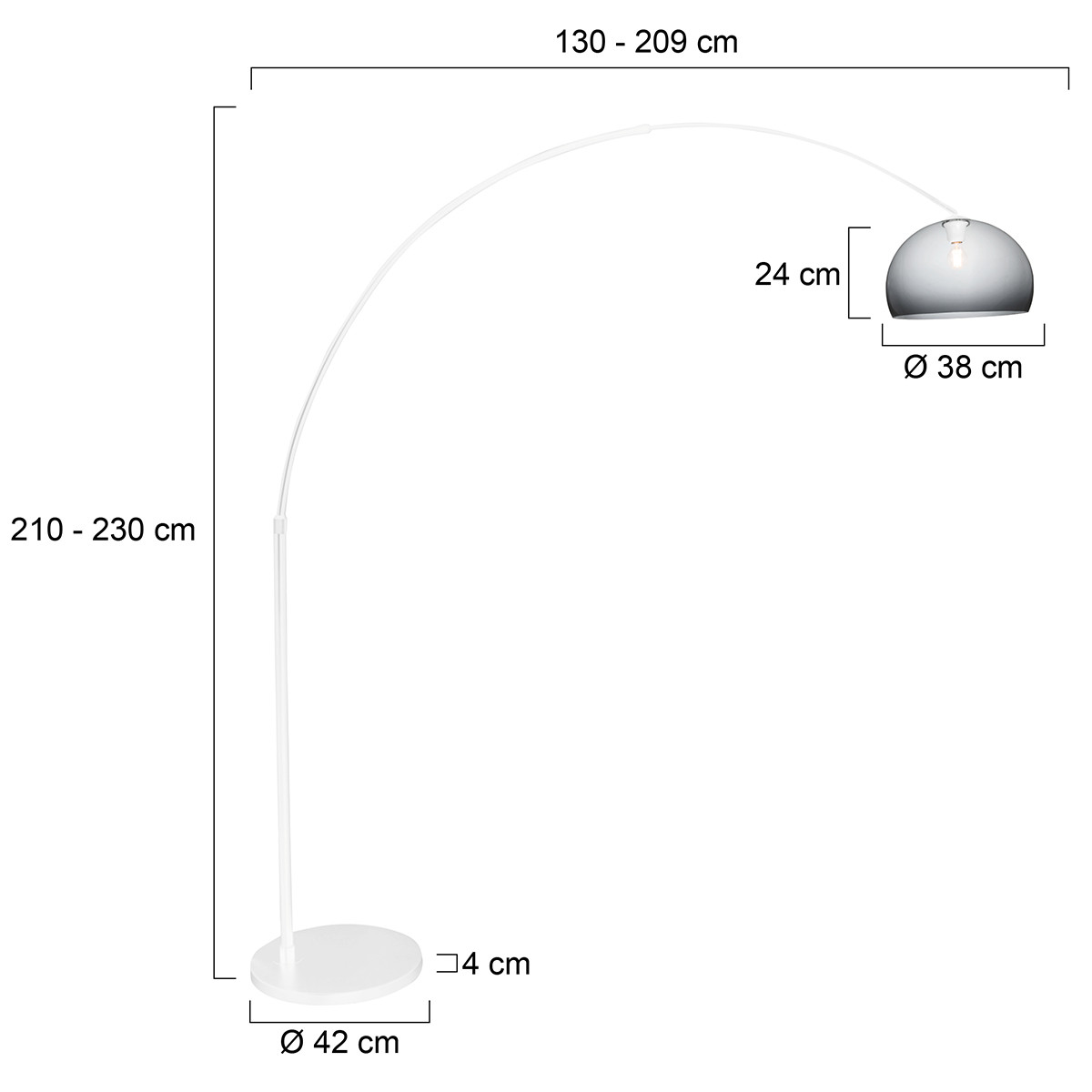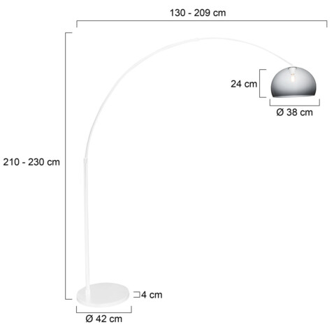 Esta lámpara de arco contemporánea de la serie Sparkled Light añade un acento refinado a cualquier interior moderno. El marco metálico blanco proporciona una base sólida y estable, mientras que la pantalla de vidrio ahumado con un diámetro de 38 cm crea una agradable difusión de luz. El casquillo E27 hace que la lámpara sea adecuada para fuentes de luz de hasta 40 vatios.