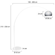 Gracias a la altura ajustable de hasta 240 cm y un brazo extensible de 230 cm de longitud, la lámpara se puede posicionar perfectamente para una iluminación óptima. El cable de 250 cm incluye un interruptor de pie integrado para mayor comodidad. Un añadido elegante y funcional para la sala de estar o el comedor, con una garantía de fábrica de dos años.