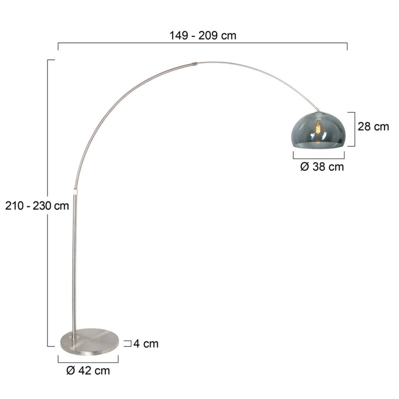 ¡Las lámparas de arco son enormemente elegantes! A menudo se colocan grandes lámparas de arco en la sala de estar. Stresa se ve bien junto a un gran sofá o una cómoda silla de lectura. Además, la lámpara de arco también ilumina con gusto la mesa del comedor o un gran escritorio. ¡Atención: elige cuidadosamente la fuente de luz para Stresa! Esta es bien visible a través de la pantalla. La pantalla gris transparente proporciona una distribución de luz acogedora. ¿Ya tienes un bonito lugar en mente para esta lámpara de arco?