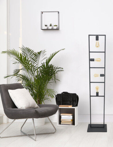 La lámpara de pie con marco negro Mexlite Racky es toda una pieza de decoración por su moderno diseño. Con un marco rectangular alberga cuatro luces que se reparten en distintas orientaciones creando una composición muy original. Perfecta para el salón, coloca a Racky junto a tu sofá para que capte toda la atención. Esta lámpara de pie de diseño es justo lo que necesitabas.