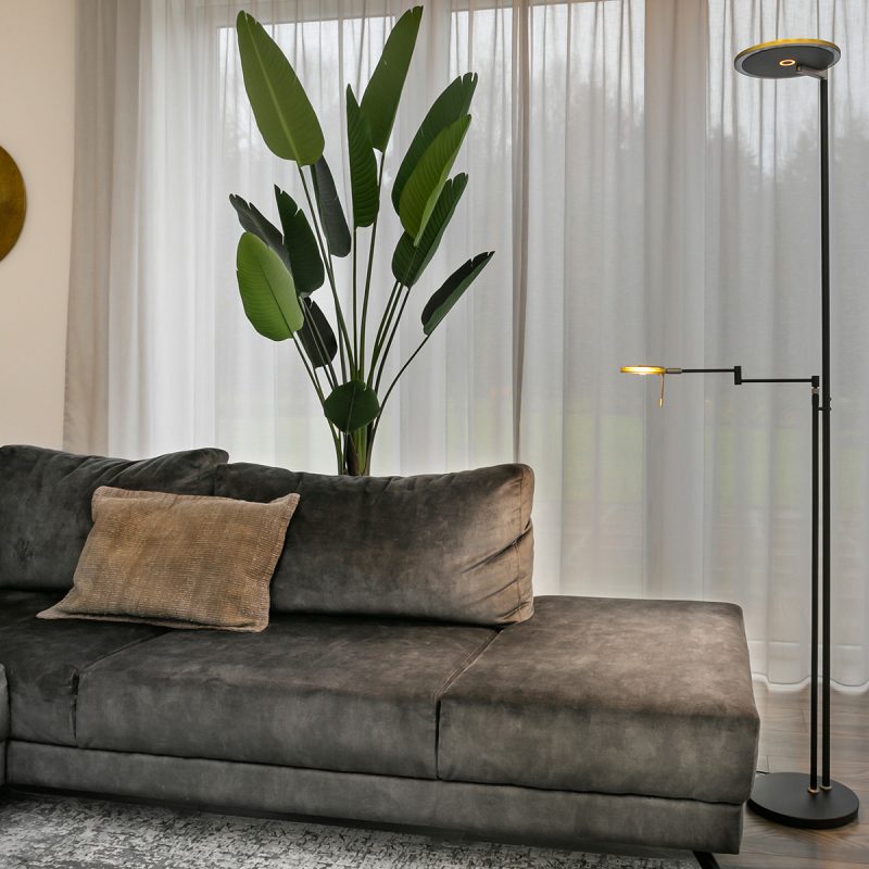 ¿Tienes una decoración elegante y moderna? ¿Buscas la lámpara de lectura perfecta para tu estilo de vida? Steinhauer tiene exactamente lo que necesitas. De la serie “Turound”, esta elegante lámpara de pie negra se coloca junto a tu sofá. La lámpara con dos elementos de iluminación en forma de disco cuenta con un regulador de pulso para tu comodidad. Esta lámpara de pie de altura masculina tiene en el medio un práctico brazo de lectura que puedes extender hasta medio metro. ¡Ideal para iluminar perfectamente tu emocionante libro!
