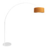 La lámpara de arco blanca de la serie Sparkled Light de Steinhauer combina la elegancia moderna con una apariencia cálida. El marco de metal limpio forma un hermoso contraste con la pantalla de terciopelo color ocre de 50 cm de diámetro, que añade un ambiente juguetón y acogedor al espacio. La altura ajustable hasta 240 cm y un brazo extensible de 230 cm hacen que la lámpara sea ideal para diversas aplicaciones.