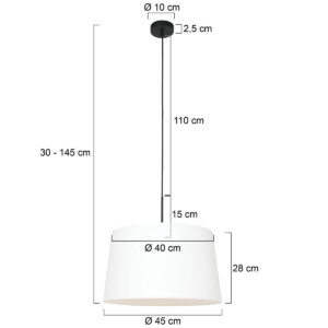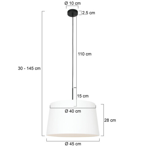 Una amplia pantalla de lino blanco y un marco metálico negro estrecho. Esa es, en pocas palabras, la Lámpara colgante con pantalla de lino blanco Steinhauer Sparkled Light negro. Esta lámpara colgante ancha muestra cómo el metal y el lino – robusto y suave – pueden complementarse entre sí. ¡Es una lámpara que atrae la atención sin ser llamativa! Ideal para el vestíbulo, la cocina o en un espacio de oficina.