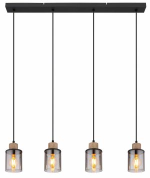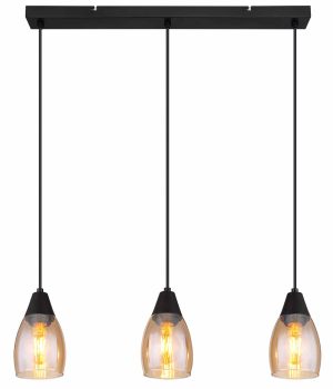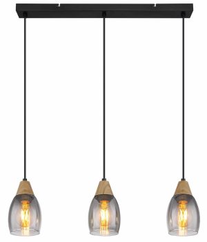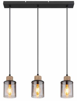 Esta increíble lámpara colgante de la serie REID inspira con un diseño hermoso. Tres cables negros de 1,2 m de largo, cada uno con una conexión E27, sobresalen de un soporte de techo de 55 cm de largo. Estos están equipados con hermosas pantallas de vidrio en color ahumado (Ø 10 cm) y le dan la posibilidad de elegir el color y la intensidad de la luz hasta un máximo de 15 vatios. Debido a su larga vida útil y ahorro de energía, recomendamos bombillas LED.