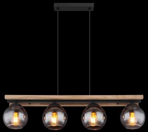 Nuestra lámpara colgante CONNI de estilo vintage ofrece un toque único a su hogar. Con una barra recta y bombillas en forma de esfera, fabricada en metal negro mate y madera marrón oscuro, esta lámpara irradia un encanto nostálgico y proporciona una luz cálida y agradable. Perfecta para crear un ambiente acogedor en salas de estar, comedores o pasillos.