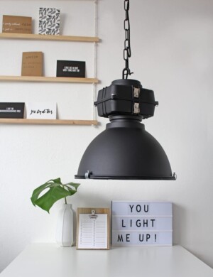 Un toque robusto y un matiz moderno, ¡esa es nuestra lámpara industrial Densi! Gracias al cristal mate en la parte inferior, la luz se distribuye maravillosamente en el espacio. ¡Nunca mirarás directamente a la luz! Así que la lámpara Densi garantiza una atmósfera acogedora. No solo es ideal sobre tu mesa de comedor, sino que también queda genial sobre tu escritorio. ¡Divertidamente singular, pero también práctica al mismo tiempo!