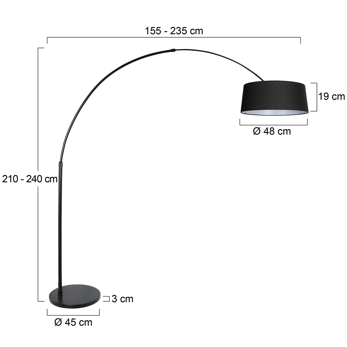 Este conjunto combina la lámpara de arco negra de la serie Sparkled Light con la pantalla de lámpara de lino negro de 48 centímetros. El armazón está fabricado en metal resistente, es ajustable hasta una altura de 240 centímetros y dispone de un portalámparas E27 inclinable para una posición perfecta de la pantalla. El interruptor de pie en el cable largo proporciona una mayor comodidad de uso.
