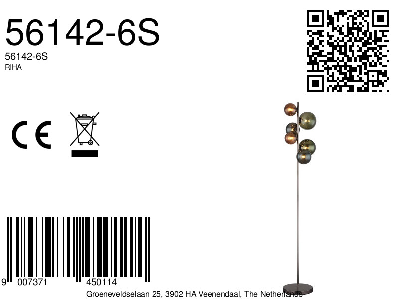 La lámpara de pie RIHA es una pieza de mobiliario llamativa que, gracias a su diseño moderno y atractivo, atrae la atención en cualquier habitación. Con una forma redonda y elementos de vidrio de diferentes tamaños, esta lámpara es un verdadero punto focal. El marco metálico gris mate le da a la lámpara una apariencia elegante, mientras que las esferas de vidrio brillantes en varios colores proporcionan una difusión de luz acogedora. Con dimensiones de 295 mm de largo y 280 mm de ancho, la lámpara de pie RIHA se adapta perfectamente a diferentes interiores.