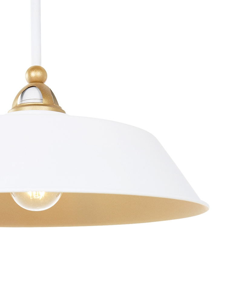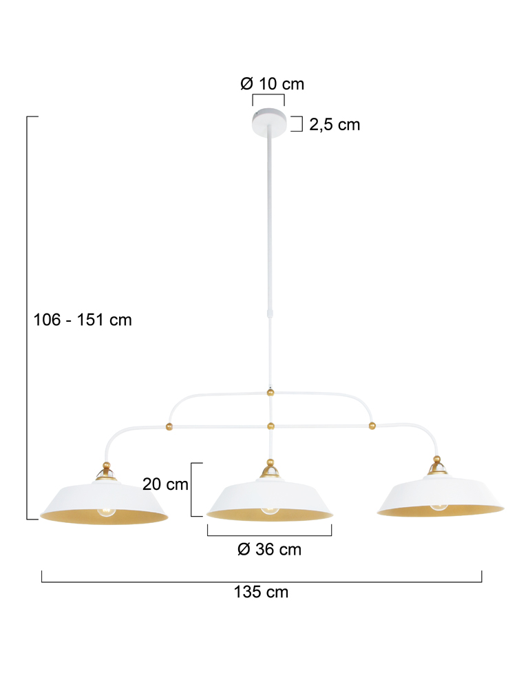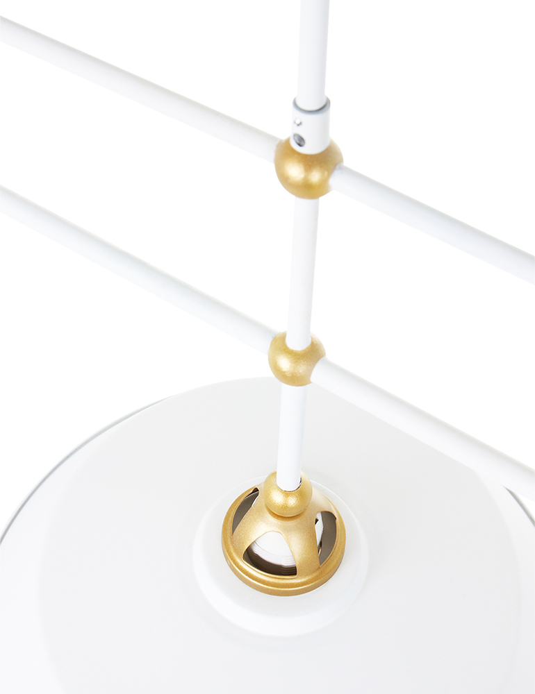 Ilumina tu hogar con la lámpara de techo Mexlite Nové en blanco y dorado. Esta moderna luminaria con un diámetro de 42 cm y una altura ajustable de 106 a 151 cm es una verdadera atracción. Se suministra sin bombilla, pero admite bombillas E27 y se puede controlar mediante un regulador externo. El Mexlite Nové es una elegante adición a tu decoración interior.