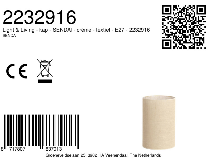 La pantalla de lámpara SENDAI de Light & Living presenta un diseño moderno y cilíndrico en un cálido color arena con un acabado textil. Su estructura proporciona una difusión de luz suave y acogedora, creando una atmósfera agradable en cualquier estancia.