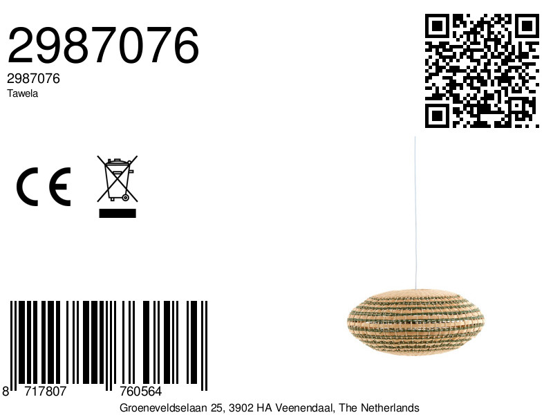 Pantalla colgante trenzada en color natural Light & Living Tawela