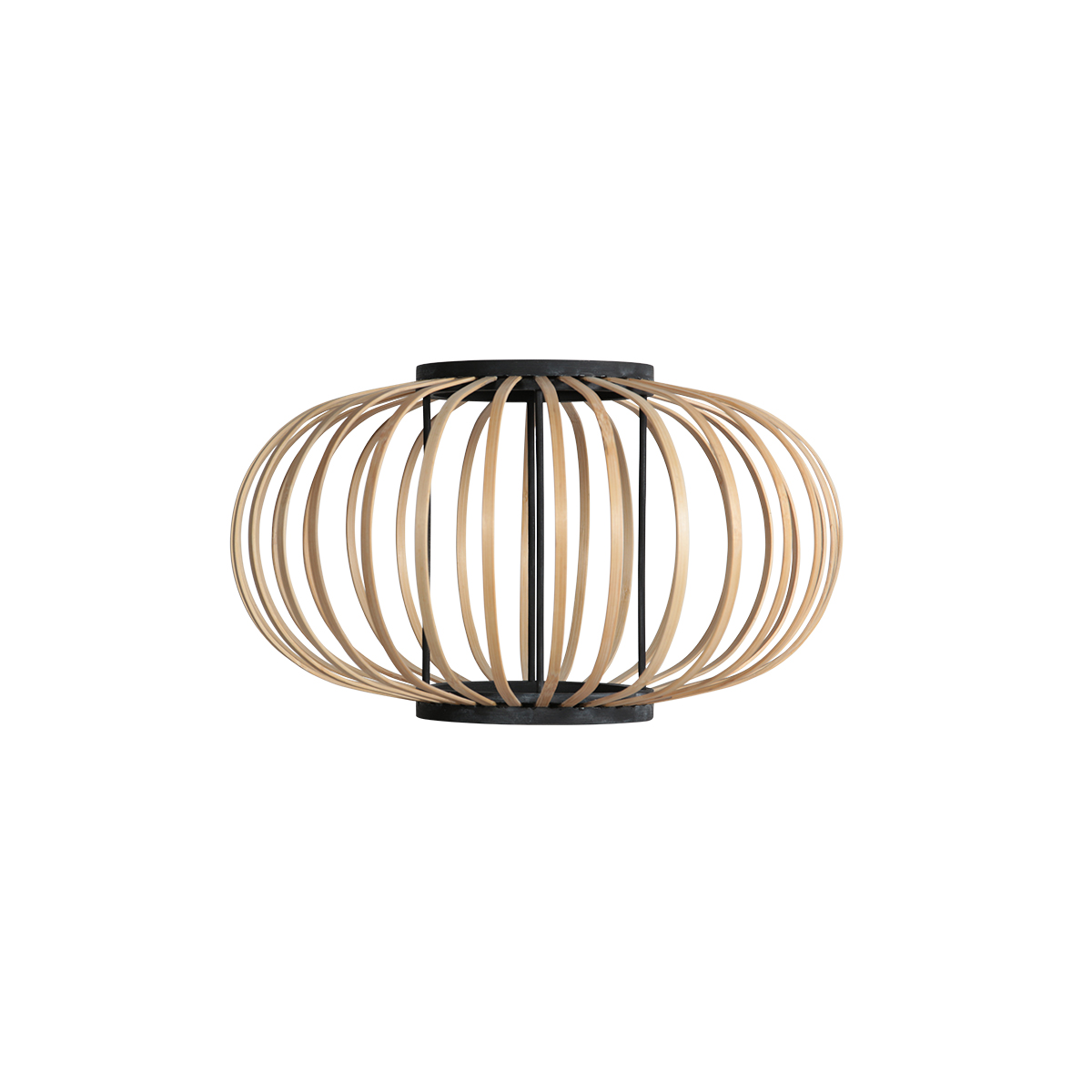 Esta pantalla de bambú de 31 cm de ancho y 18 cm de alto tiene una estructura abierta y fina de bambú que crea un hermoso patrón de luz y sombra en el espacio. La combinación de bambú y el detalle negro en la parte superior le da a la pantalla un carácter moderno y natural.