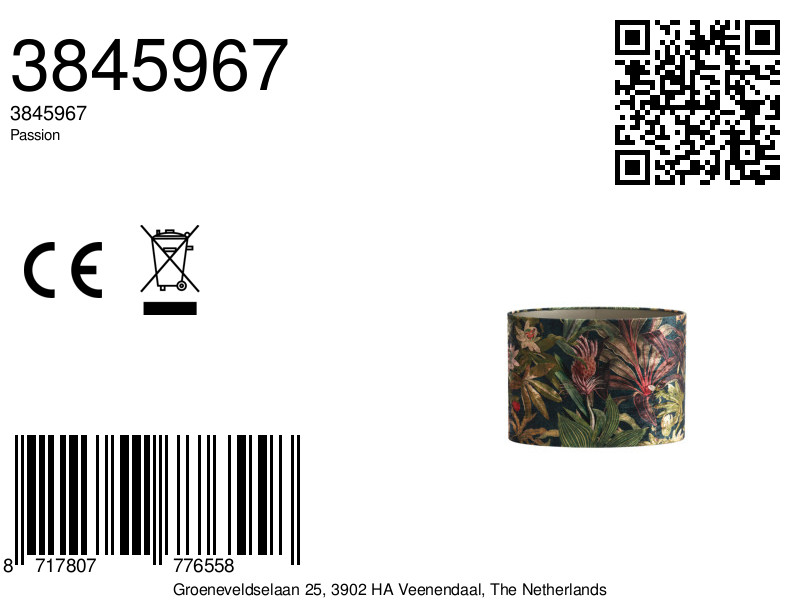 La pantalla pertenece a la colección Passion y está decorada con un hermoso patrón floral que trae naturaleza a su casa. Con una clasificación de seguridad IP20, esta pantalla es a prueba de polvo y perfecta para uso en interiores. Puede contar con calidad y durabilidad gracias a su garantía de 2 años. Transforme su espacio vital con esta única pantalla de lámpara y disfrute de la atractiva apariencia que ofrece. ¡Haga su pedido hoy y dé a su interior una actualización elegante!