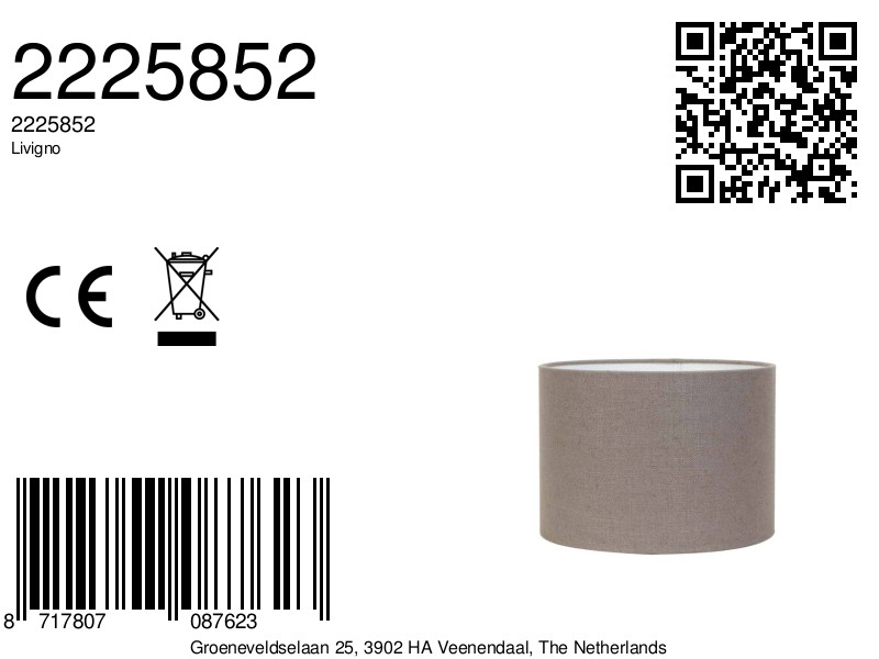 Pantalla de lámpara de forma cilíndrica taupe Light & Living Livigno