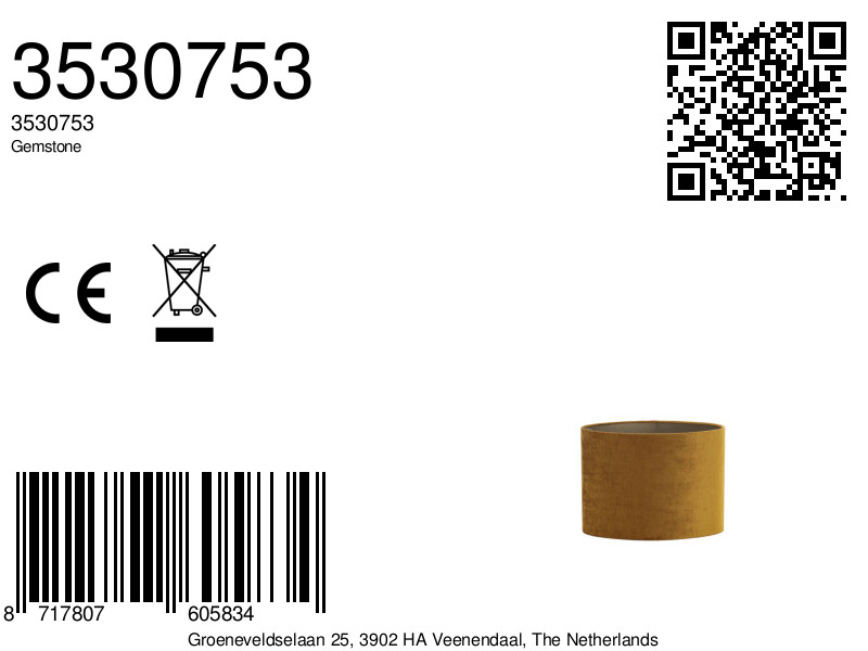 Pantalla de lámpara de terciopelo color dorado Light & Living Gemstone