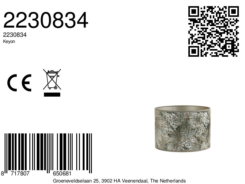 Pantalla de lámpara estampado de animales en forma cilíndrica Light & Living Keyon