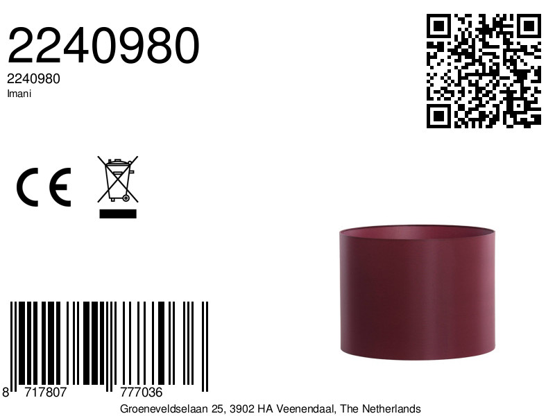 Ilumine su hogar con esta hermosa pantalla de lámpara cilíndrica de Light & Living en un elegante tono burdeos. Gracias al uso de textiles de alta calidad, esta moderna pantalla crea un ambiente cálido y acogedor. Con un diámetro de 40 cm y una altura de 30 cm, esta pantalla es ideal para sobre su mesa de comedor o en la sala de estar. La colección Imani aporta un toque contemporáneo a cualquier espacio, y con la clasificación de protección IP20, esta pantalla es a prueba de polvo y práctica de usar.