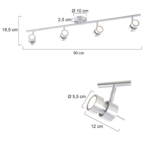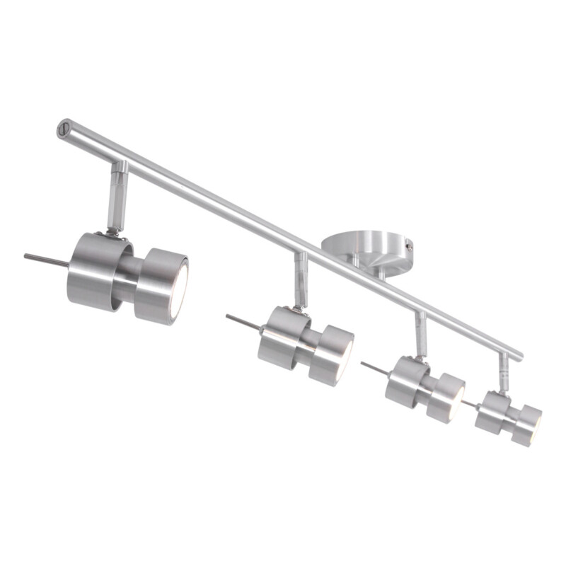El plafón de 4 luces en color acero Natasja de Steinhauer ofrece potencia y flexibilidad en un diseño moderno. Los cabezales de los focos ajustables permiten iluminar múltiples ángulos de la habitación. Incluye bombillas GU10 con función de atenuación, una máxima luminosidad de 480 lúmenes por foco y un ancho de 90 cm para una iluminación óptima.