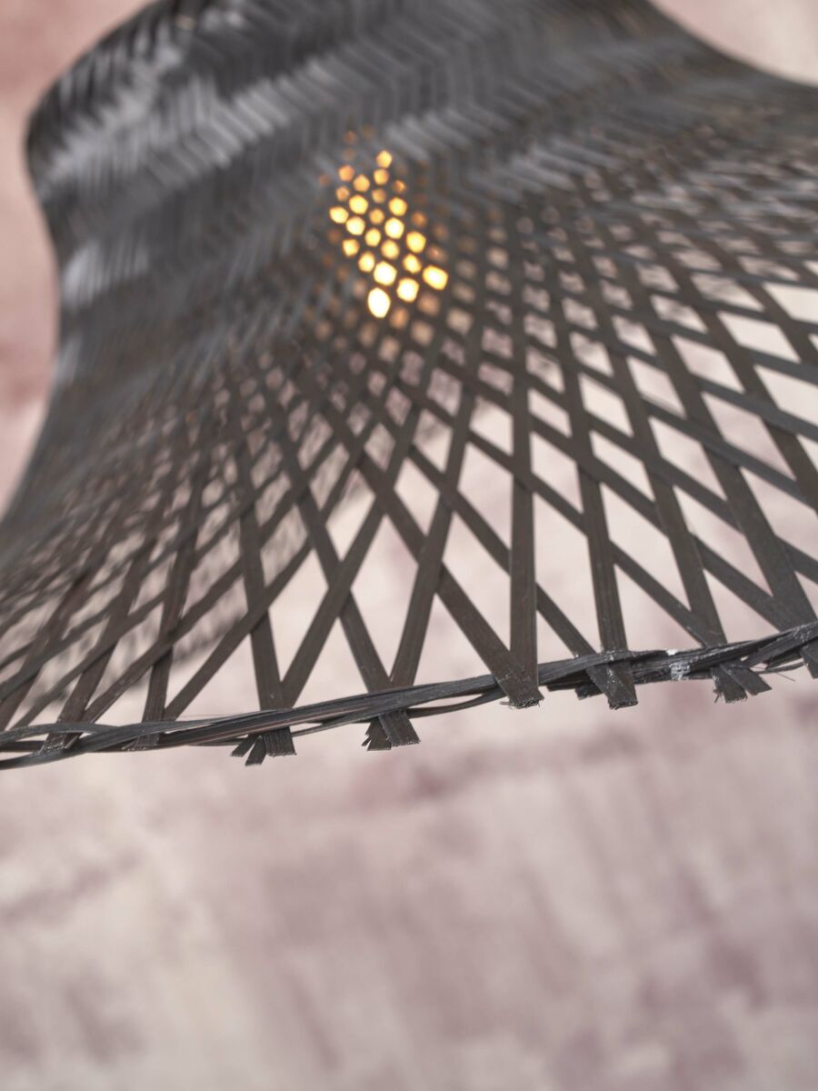Lámpara de techo bohemia negra de bambú, ideal para comedor, pasillo, dormitorio o sala de estar. Equipado con un gran casquillo E27 y a prueba de polvo (IP20). Esta lámpara añade un toque bohemio y natural a tu interior, perfecta para una atmósfera acogedora y única.