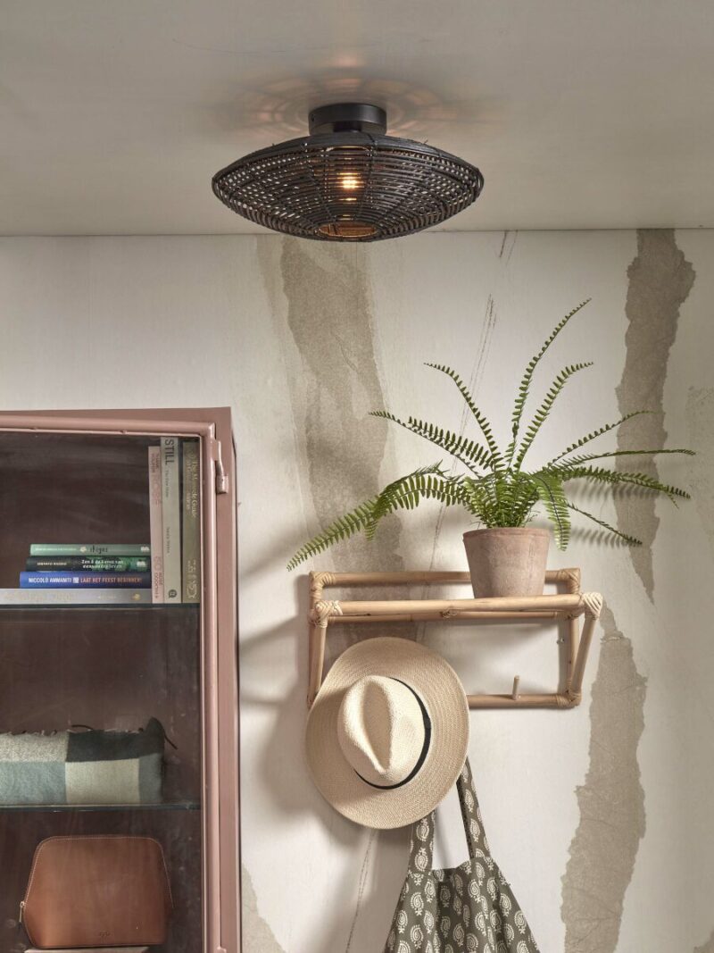 Plafón bohemio negro de metal y ratán, GOOD&MOJO Tanami. Apto para comedor, pasillo, dormitorio o sala de estar. Equipado con casquillo E27 y a prueba de polvo (IP20). Sin fuente de luz incluida. Esta lámpara añade un toque moderno y bohemio a tu interior. Un verdadero punto focal.