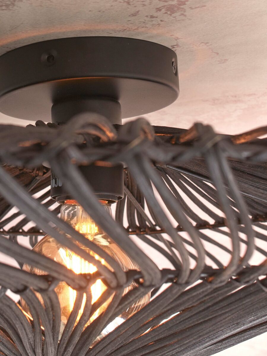 La plafonera de ratán negro y metal de la serie Zanzibar ofrece un diseño bohemio con un fuerte impacto visual. Perfecta para agregar carácter a comedores o salas de estar. Protección contra el polvo IP20 y casquillo E27 para estilo y durabilidad.