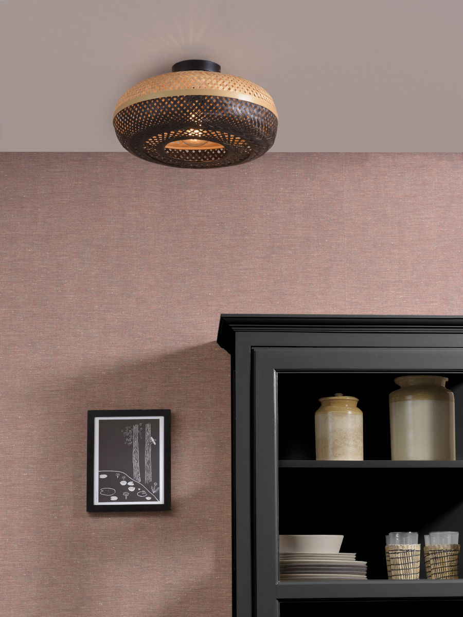 Lámpara de plafón bohemia en negro con bambú natural, GOOD&MOJO Palawan. Ideal para el comedor, el pasillo, el dormitorio o la sala de estar. Compatible con casquillo E27 y a prueba de polvo (IP20). Fuente de luz no incluida. Para un aspecto cálido y natural en tu interior. Esta lámpara aporta un toque de naturaleza a tu hogar.