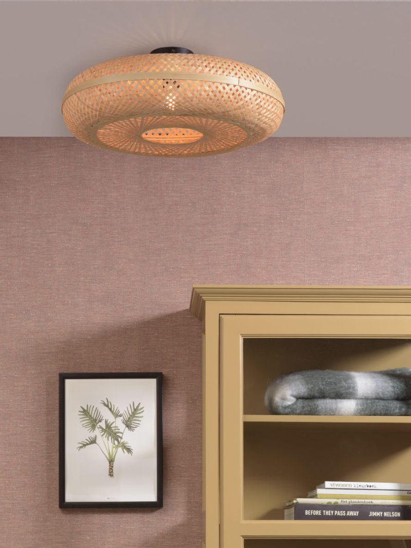Plafón bohemio de bambú negro natural de GOOD&MOJO Palawan. Esta lámpara es ideal para el comedor, pasillo, dormitorio o sala de estar. Equipado con casquillo E27 y a prueba de polvo (IP20). Fuente de luz no incluida. Aporta un toque de naturaleza y estilo a tu interior con esta hermosa lámpara.