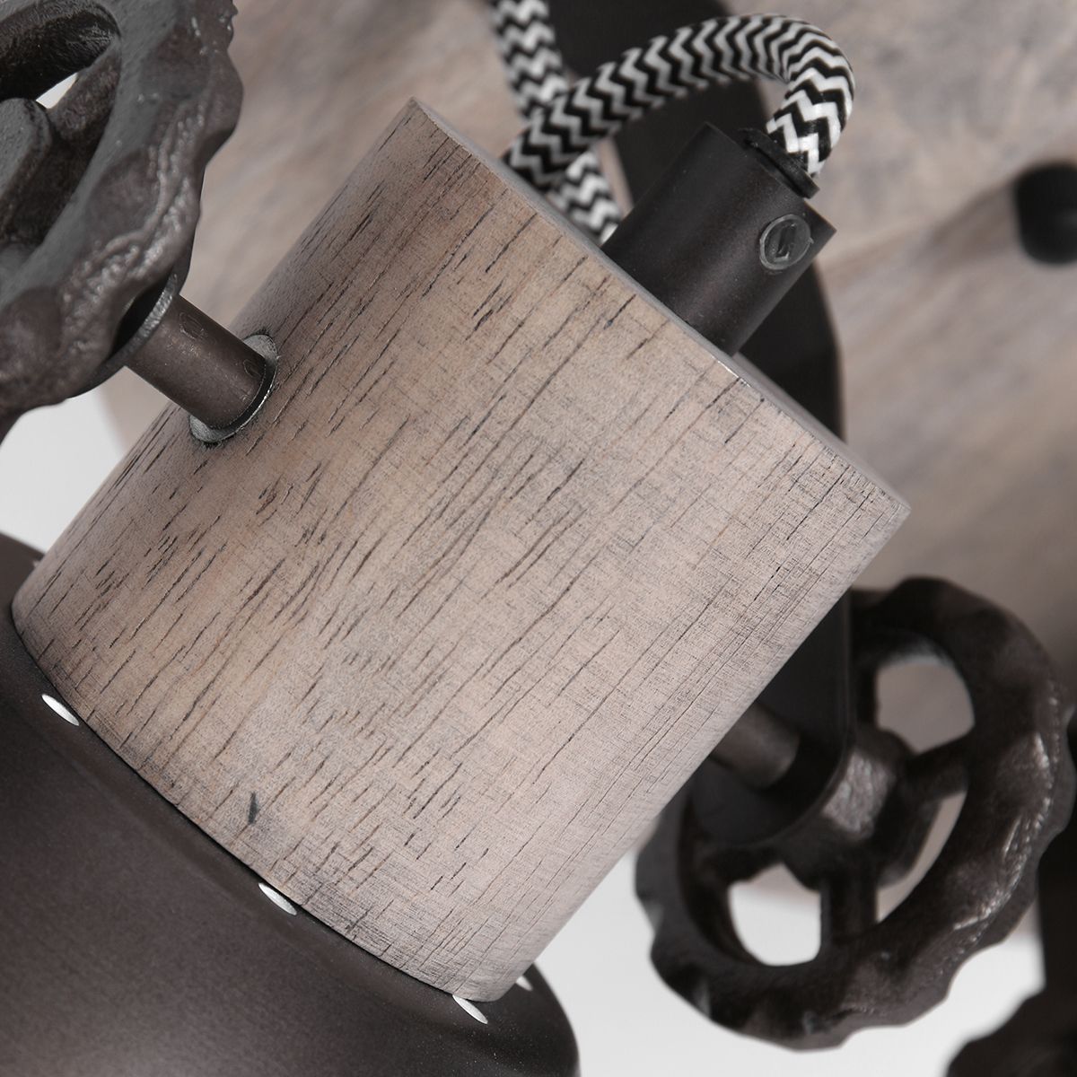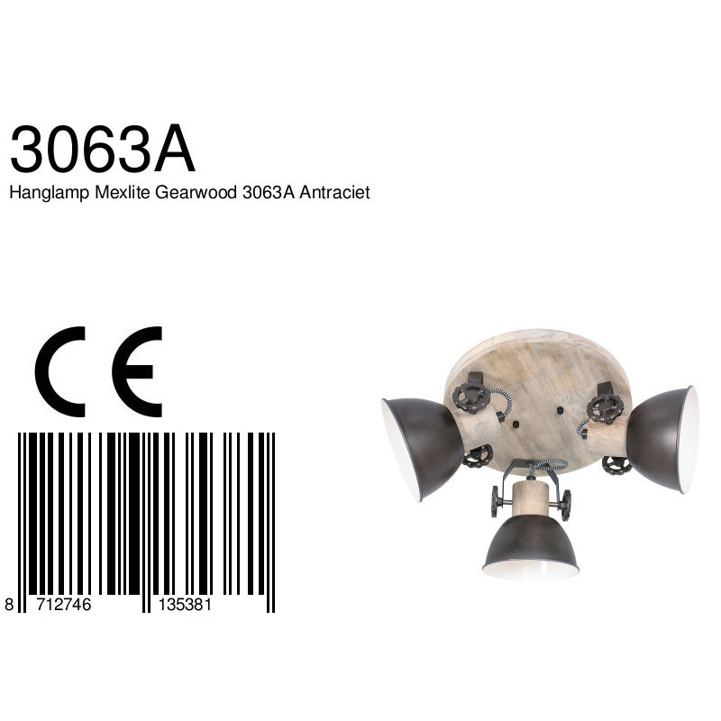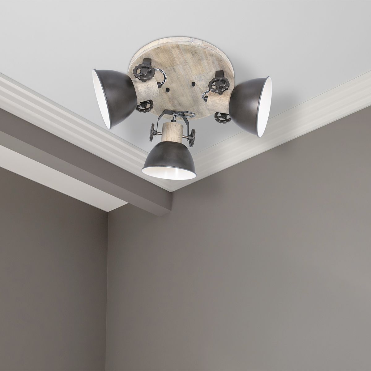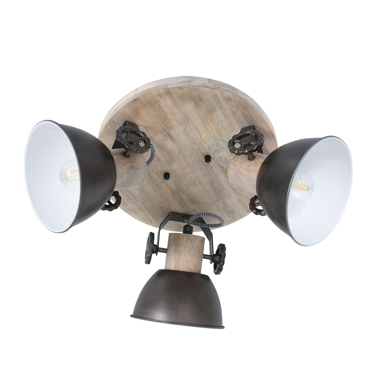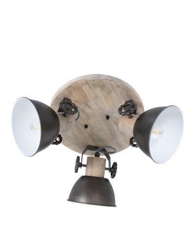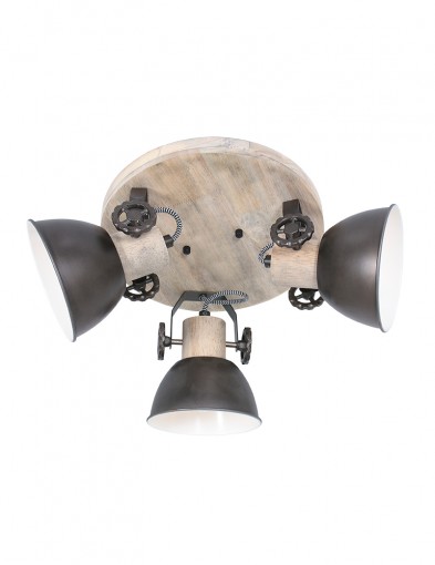 Buscas una lámpara de techo bonita que irradie en todas las direcciones. Quizás no estés buscando focos, pero ¿has visto la “Gearwood” de Mexlite? Este es un diseño que encaja muy bien en estilos de decoración rural, industrial y retro. En una placa de techo redonda de madera, hay tres focos metálicos en color antracita que también presentan detalles de madera. ¡Presta atención a las divertidas engranajes!