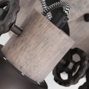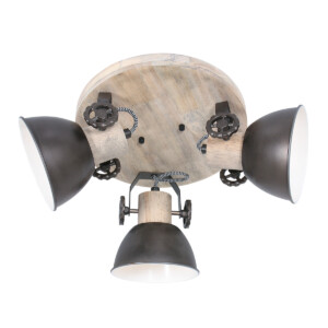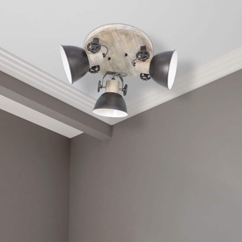 La lámpara de techo Gearwood combina el encanto industrial con cálidos acentos de madera. Los tres focos ajustables, en antracita con detalles de madera, ofrecen una distribución de luz flexible. La lámpara tiene un diámetro de 30 cm y está equipada con casquillos E27, adecuados para fuentes de luz de hasta 40 vatios. Con una fuente de luz regulable y un regulador externo, puedes ajustar fácilmente el ambiente a tus deseos.