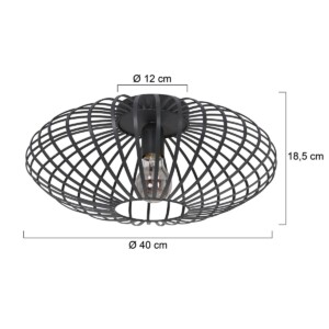 La lámpara de techo An es un complemento elegante para cualquier espacio. Su diseño abierto con tiras metálicas crea un efecto luminoso juguetón en el techo y las paredes. Con un diámetro de 40 cm, esta lámpara encaja perfectamente en el pasillo, vestíbulo, dormitorio o baño. Equipado con un casquillo E27 y adecuado para diversas fuentes de luz de hasta 40 vatios. Regulable con un atenuador externo (no incluido) para una iluminación cálida y acogedora.