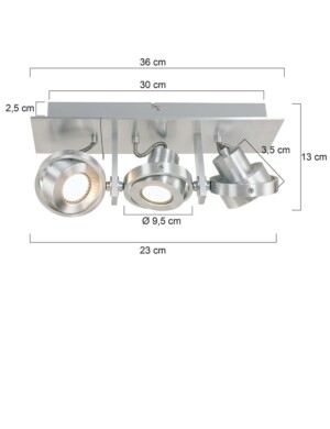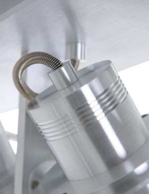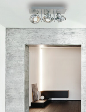 - West Point está hecho de acero cepillado y los focos de luz se pueden girar e inclinar por separado. Este plafón industrial se puede montar tanto en la pared como en el techo.