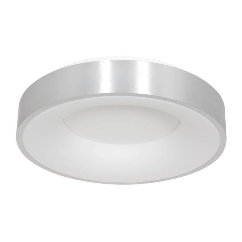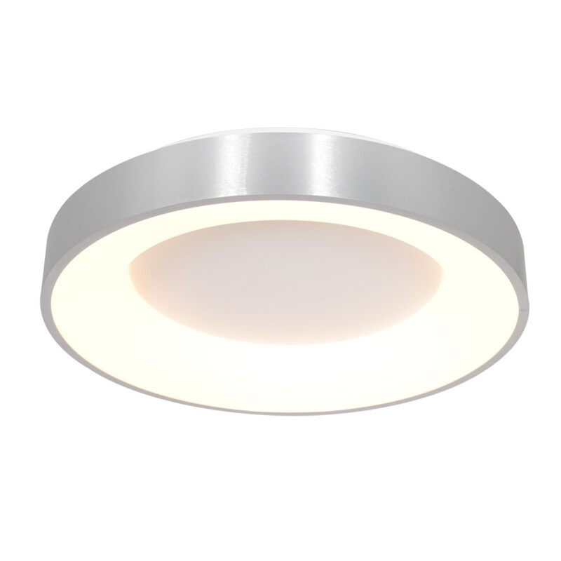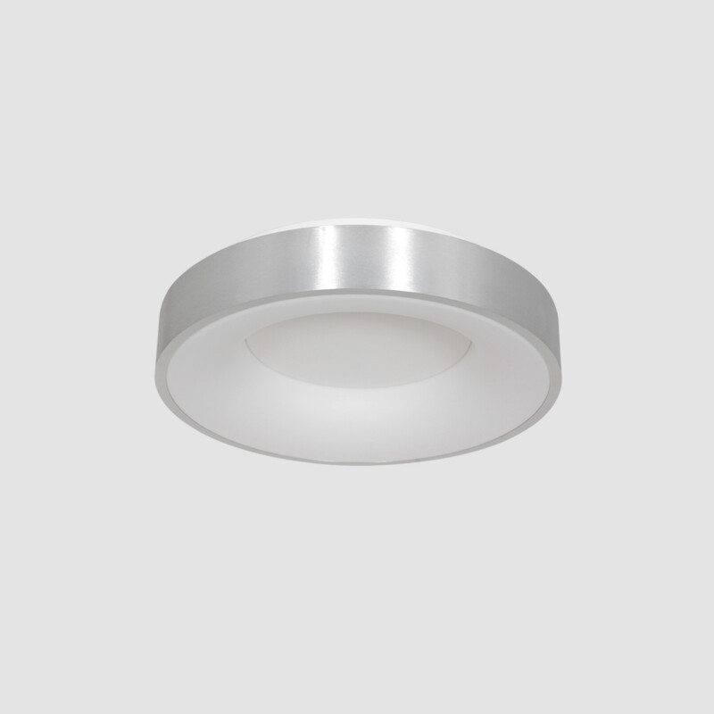 La plafonera en color plateado de la serie Ringlede está equipada con un módulo LED de 30 vatios que ofrece una máxima salida de luz de 2800 lúmenes. La cálida temperatura de color de 2700 Kelvin hace que la lámpara sea adecuada para diversos espacios. Con un diámetro de 38 cm, la lámpara presenta un carácter sutil y moderno. Regulable con un dimmer externo (no incluido) para un control óptimo del ambiente.