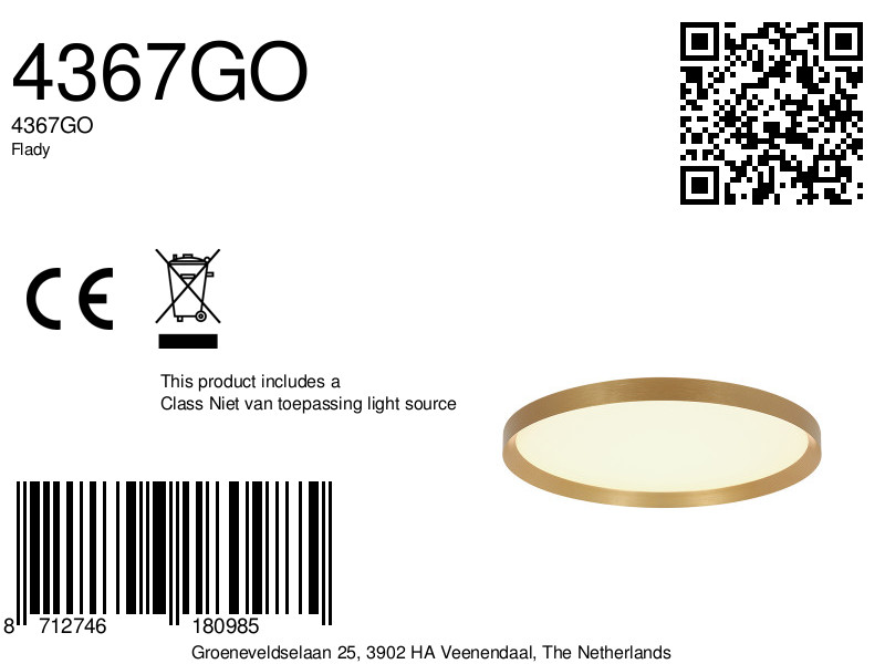 El color de luz blanca cálida y la posibilidad de atenuar la lámpara mediante un regulador externo hacen que la Flady 4367GO sea adecuada tanto para luz funcional como para luz ambiental. Úsala como una declaración única en el techo o combina varios ejemplares en espacios más grandes. El acabado dorado añade un toque de lujo refinado, mientras que el diseño elegante se adapta perfectamente a interiores modernos y atemporales. Por lo tanto, la Flady 4367GO es una opción versátil para quienes buscan una lámpara de techo estilosa y eficiente en energía con alta salida de luz.