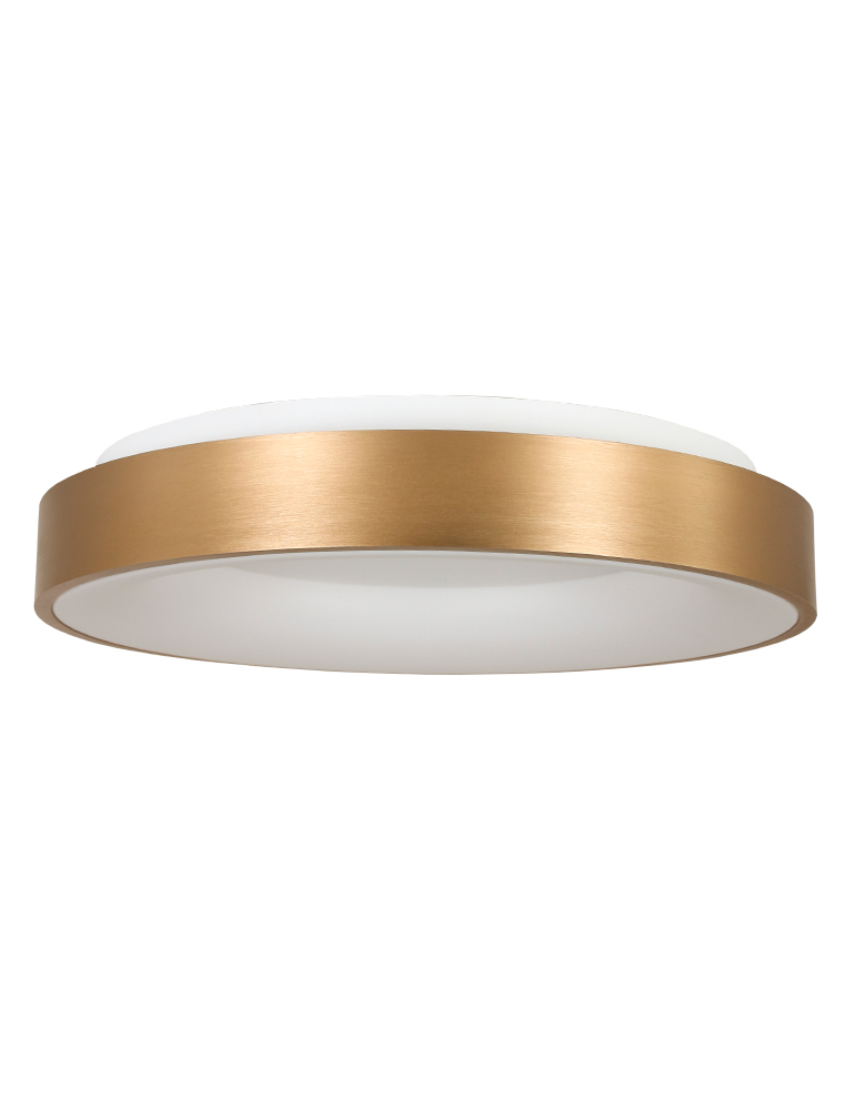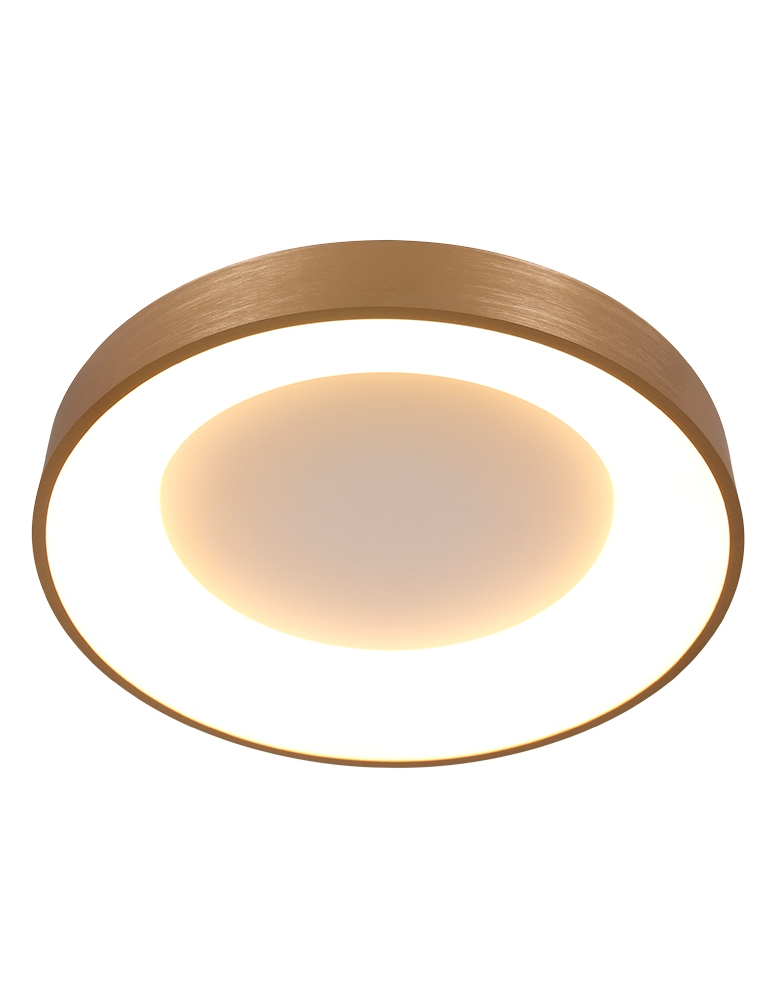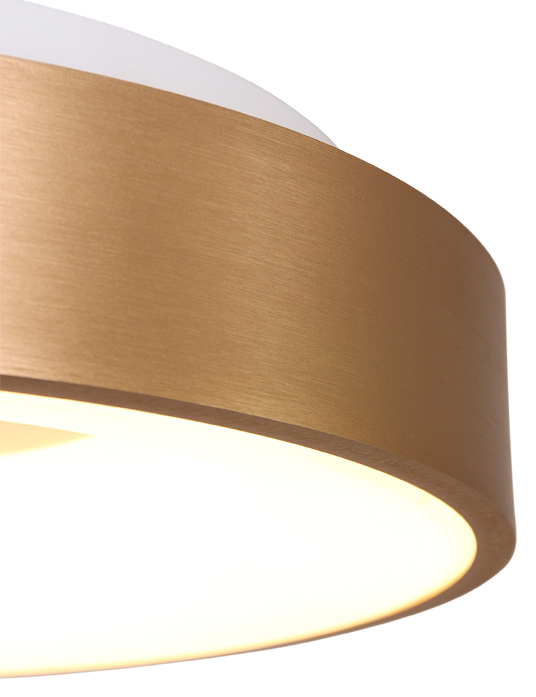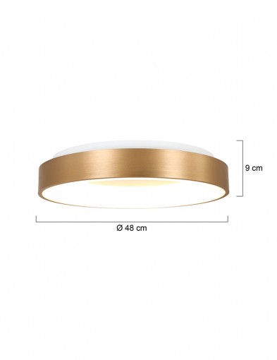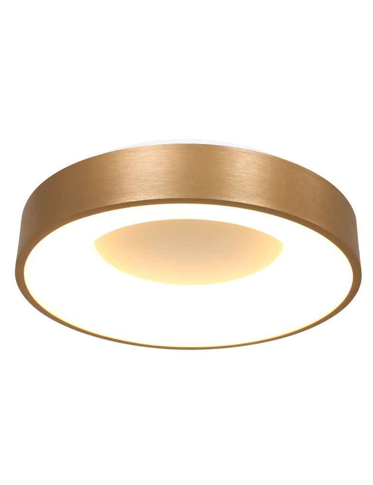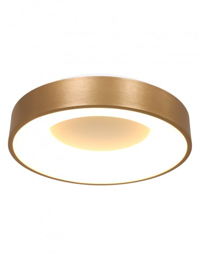 La plafonera de color dorado de la serie Ringlede tiene un diámetro de 48 cm y un módulo LED de 40 vatios con una salida de luz máxima de 3600 lúmenes. La temperatura de color de 2700 Kelvin proporciona una iluminación cálida y acogedora. Regulable con un regulador externo (no incluido), para que puedas ajustar fácilmente la intensidad de la luz según el espacio.