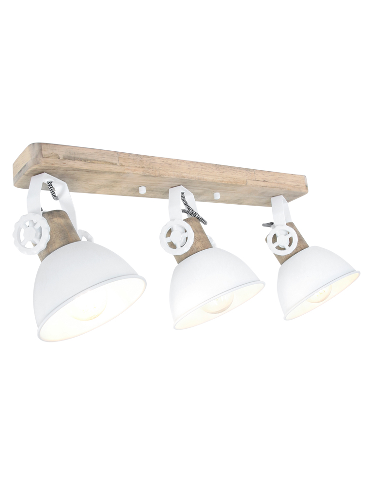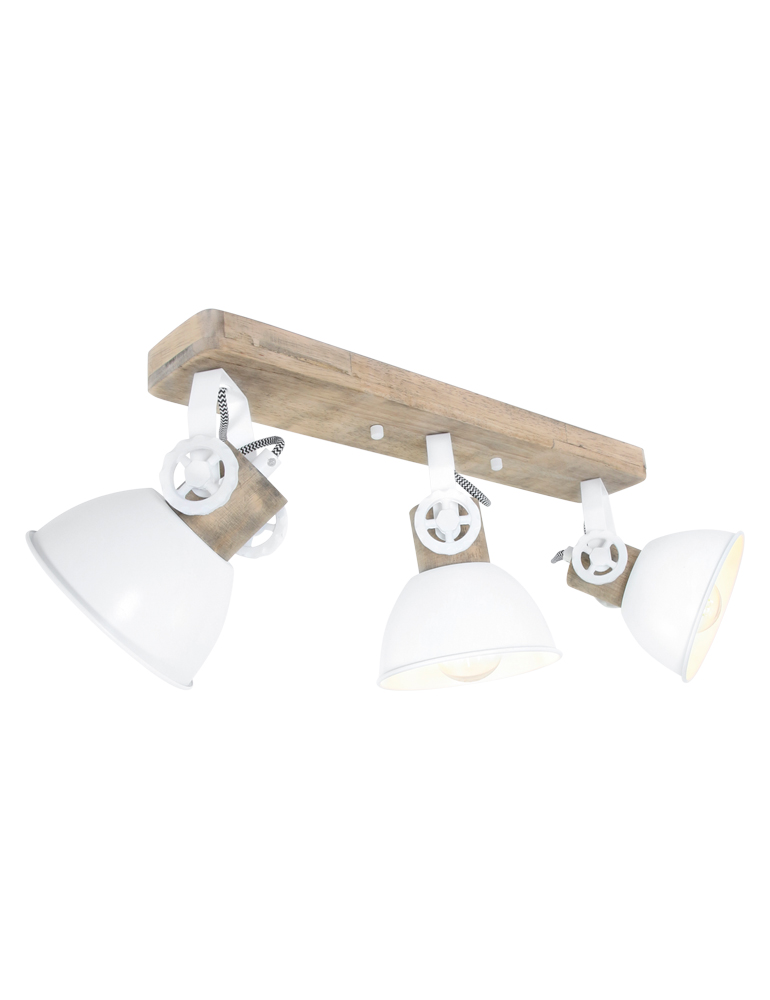¿Te gusta un interior con una apariencia natural? Entonces estás en el lugar correcto con esta lámpara de techo industrial blanca de 3 luces de Mexlite. La lámpara tiene como base una placa de techo de madera que se monta en el punto de luz de tu techo. Los tres focos no solo tienen hermosos acentos de madera, sino que también se pueden girar y dirigir de forma independiente con la ayuda de las ruedas en los lados. La madera proporciona la apariencia natural, mientras que el blanco le da a tu interior una agradable frescura escandinava.