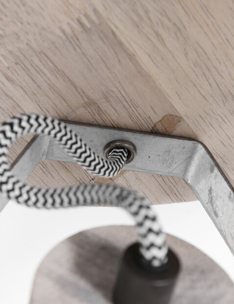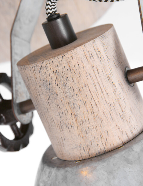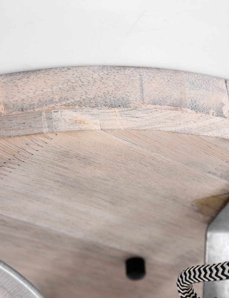 ¿Estás buscando bonitos focos direccionales para tu sala de estar de estilo industrial? Entonces Mexlite tiene para ti esta lámpara de techo de tres luces. Tres focos de color níquel están montados en una placa de techo de madera. Los focos tienen detalles de madera, cables envueltos en algodón y ruedas para ajustar los focos. Este “Gearwood” también se ve muy bien en interiores rústicos. Tenemos curiosidad por saber dónde lo vas a colgar: ¿en el dormitorio, la cocina o la sala de estar?