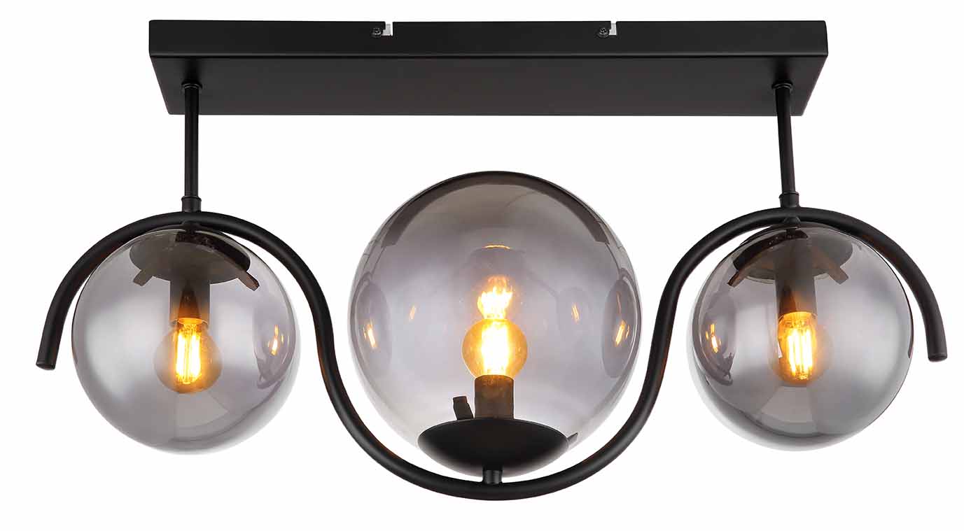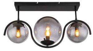 Encanta tu interior con esta lámpara de techo de diseño único. Cuenta con dos llamativas columnas en negro mate que conducen a una fuerte barra metálica en forma de S. Hay tres portalámparas E14 fijos a esta barra, cada uno decorado con elegantes pantallas de vidrio ahumado. Elige un color y brillo de luz a tu gusto, con una potencia máxima de 25 vatios, gracias a las conexiones E14 flexibles. Sugerimos el uso de bombillas LED por su amplia durabilidad y eficiencia energética.
