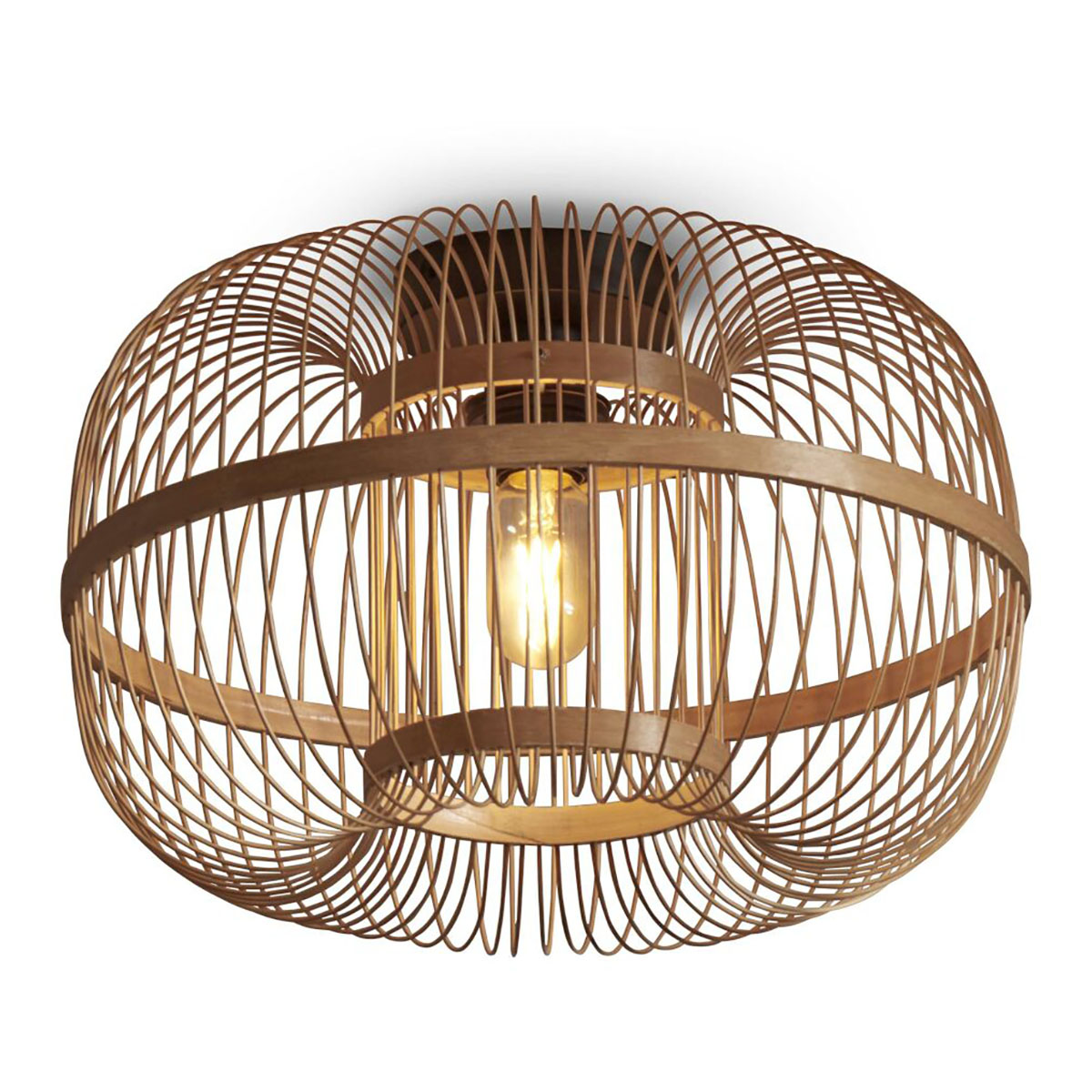 Plafón oriental de metal y bambú en tonos naturales, adecuado para el comedor, pasillo, dormitorio o sala de estar. Equipado con un gran casquillo E27 y a prueba de polvo (IP20). Aporta un toque rústico y exótico a tu interior con esta lámpara única.