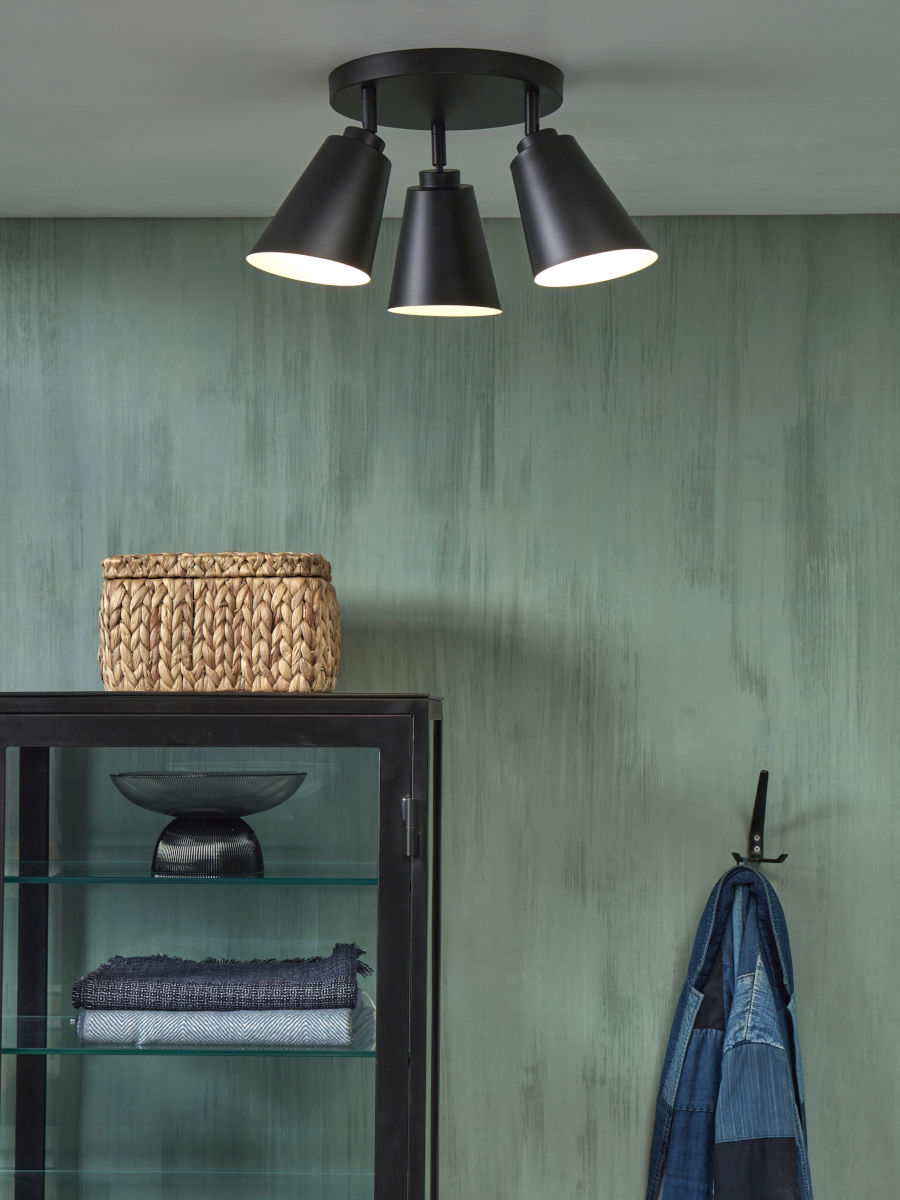 La plafonera redonda de 3 luces Bremen en metal negro añade un ambiente retro a tu comedor, pasillo o dormitorio. Esta lámpara ofrece iluminación práctica y una apariencia nostálgica, equipada con un casquillo E27 y una clasificación de impermeabilidad IP20.