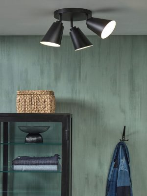La plafonera redonda de 3 luces Bremen en metal negro añade un ambiente retro a tu comedor, pasillo o dormitorio. Esta lámpara ofrece iluminación práctica y una apariencia nostálgica, equipada con un casquillo E27 y una clasificación de impermeabilidad IP20.
