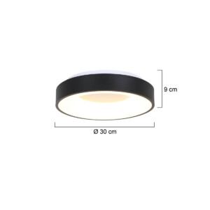 La lámpara de techo Ringlede negra combina un diseño contemporáneo con iluminación eficiente. Equipado con un módulo LED reemplazable de 30 vatios con una salida de luz de 2800 lúmenes y un color de luz cálido de 2700 Kelvin. Gracias al controlador regulable, la lámpara se puede atenuar fácilmente con un dimmer de pared (no incluido). Con un diámetro de 30 cm y una altura de 9 cm, esta lámpara ofrece una solución estilosa y práctica para cualquier espacio.