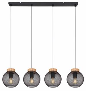 Esta lámpara de techo de la serie Pablo (60×35 cm) es un bonito complemento para tu interior. Está compuesta por una barra metálica curvada de color negro mate, a la que se han fijado cuatro discos de madera con pantallas de malla metálica curvada. Estos pueden equiparse con bombillas E27 de tu elección, lo que te da la posibilidad de determinar individualmente el color y la intensidad de la luz. Con más modelos de esta serie, puedes completar la imagen total en tus cuatro paredes.